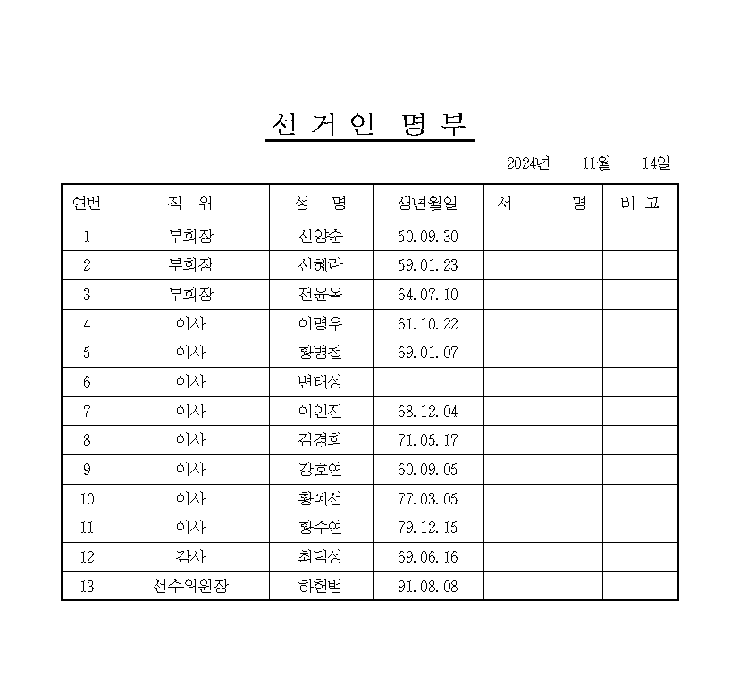 강원특별자치도장애인댄스스포츠연맹 제6대 회장 선거 선거인 명부 공고